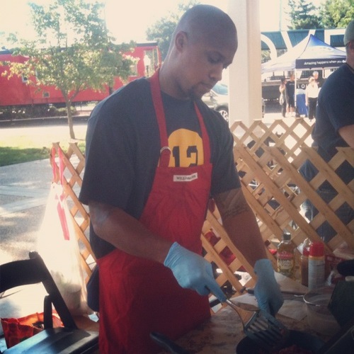 We competed together, not against each other, which was great because I don’t have my own chili recipe. Kris uses Jamie Deen’s chili recipe as the base, but he puts his own spin on it and everyone seems to love it. It consists of beef, sausage, chicken, bacon, three beans and a secret ingredient that we cannot reveal.