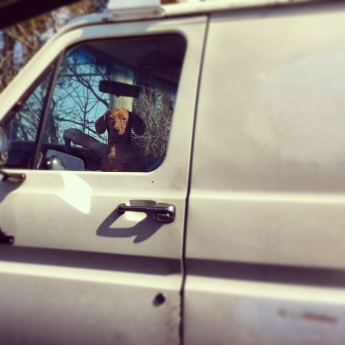 This dog is driving a pedophile van like a boss.