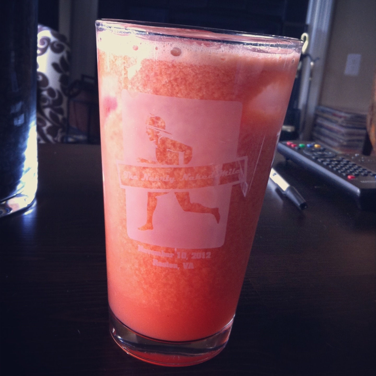 Lyssa’s Photo of the Day: 8/9/13 Posted on August 9, 2013August 10, 2013 by Great Goal Rush Orange, watermelon, carrot, and kale juice to prepare for eating competition. Share this: Click to share on X (Opens in new window) X Click to share on Facebook (Opens in new window) Facebook Like Loading... Related