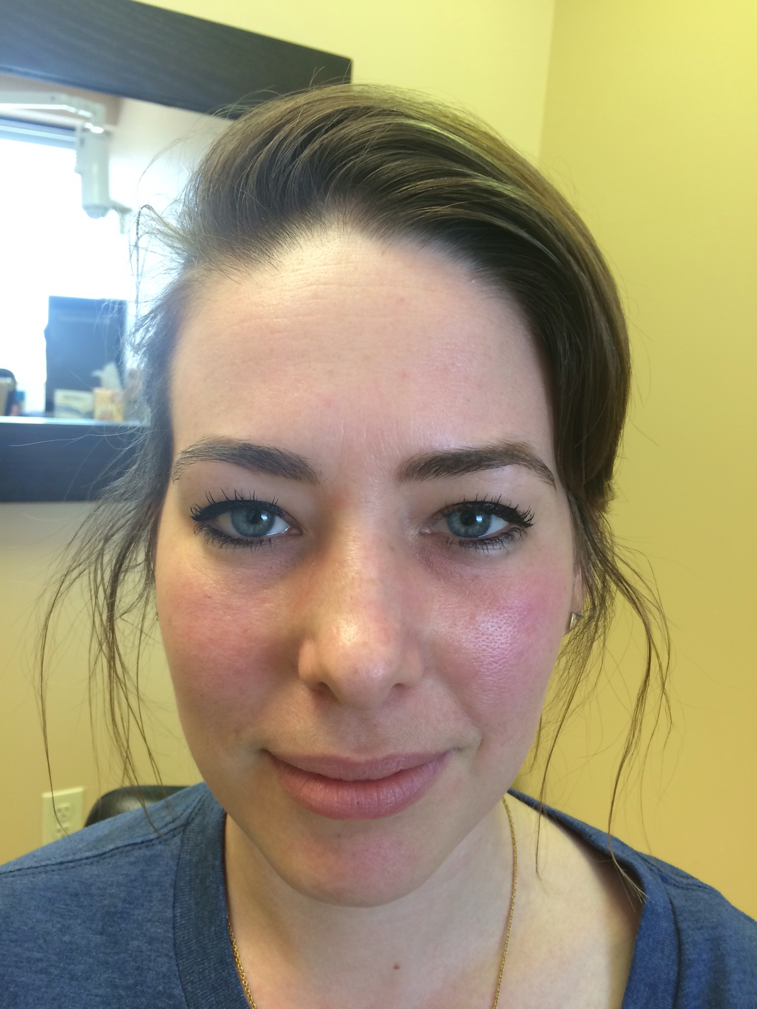 My turn! Unlike Erin, I have a bit more space to work with, so she had no reservations about giving me Botox. After our consultation, and reading the risks (GOOD GOD IT’S TERRIFYING) we were ready to go. I told her that I wanted to see the effects, but I still wanted movement in the area. She applied 15 units in the middle of my brow and a few above my brow.