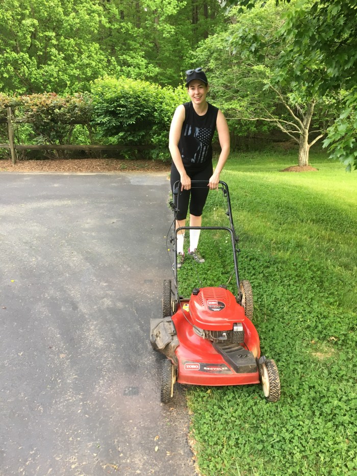 The riding lawn mower was a peaceful experience. The push… not so much. This whole experience made me appreciate how much I love not having a yard to maintain. Back to my cement lawn!