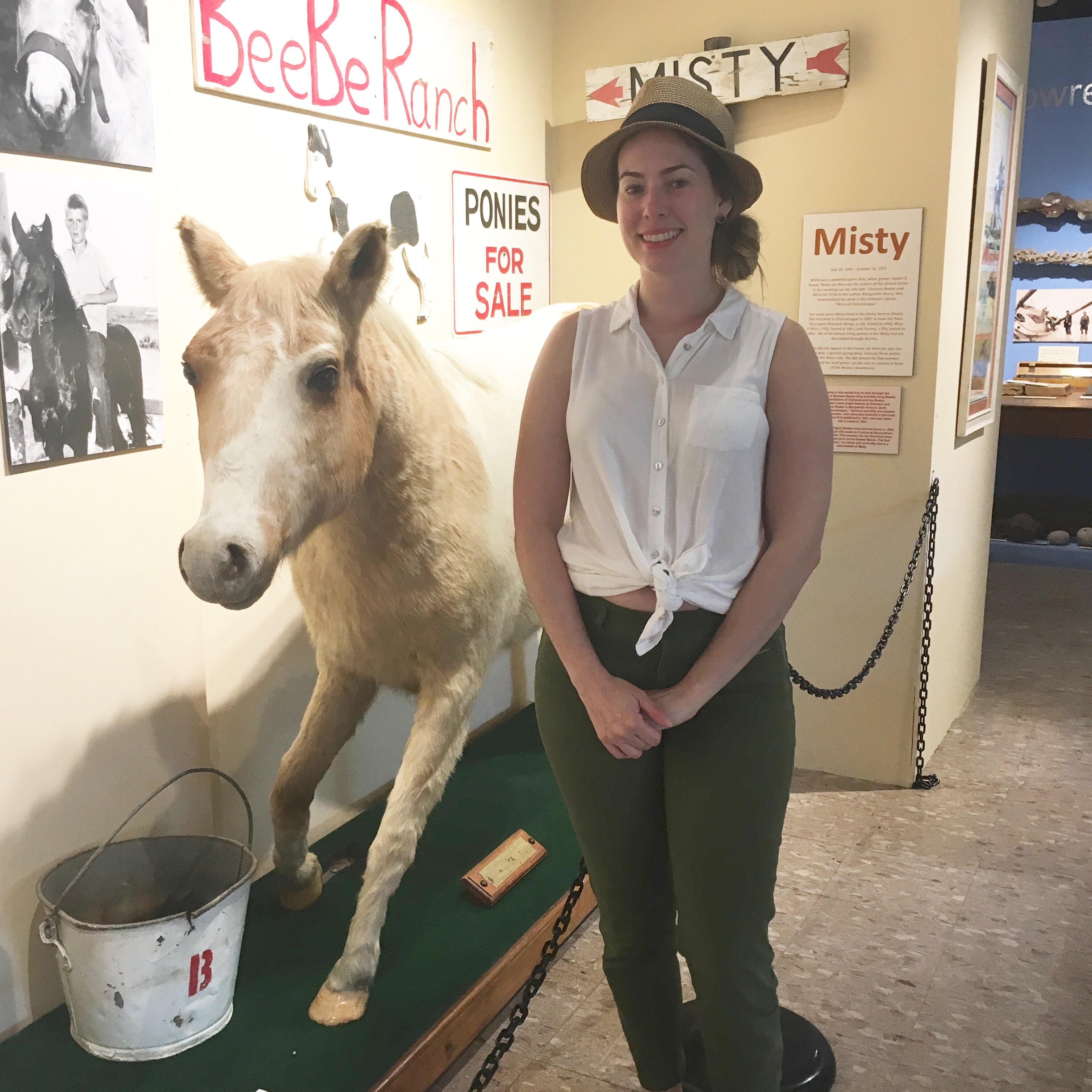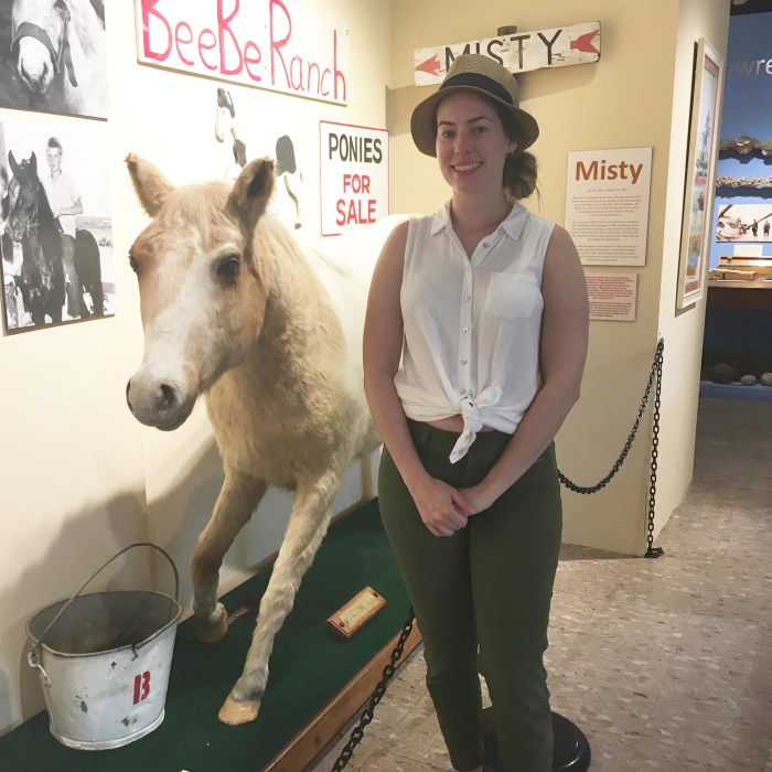 For those who are unaware, there are feral ponies that live on Assateague Island, a barrier Island on the Eastern Shore of Virginia/Maryland. Legend has it that these ponies settled on the island after a shipwreck in the 1600s. You might’ve heard about these ponies after reading “Misty of Chincoteague” in elementary school. See below, I’m with the legendary Misty, who is now stuffed and on display at the Chicoteague Island Museum. I almost failed fourth grade because I failed to turn in this book report, but I won’t hold it against Misty.